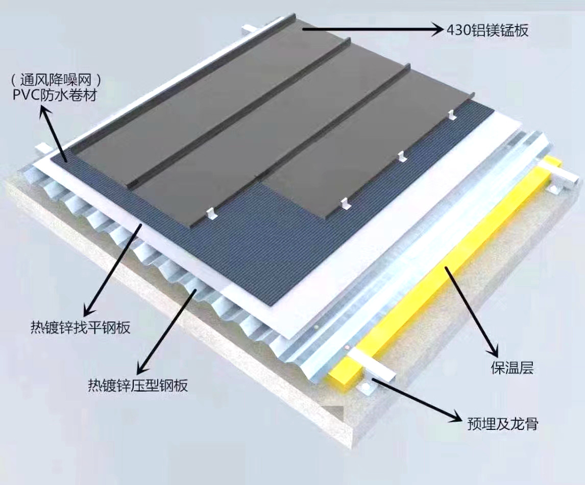 YX25-430矮立边铝镁锰屋面外板360度双直立锁边